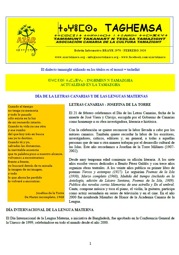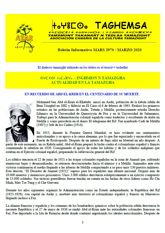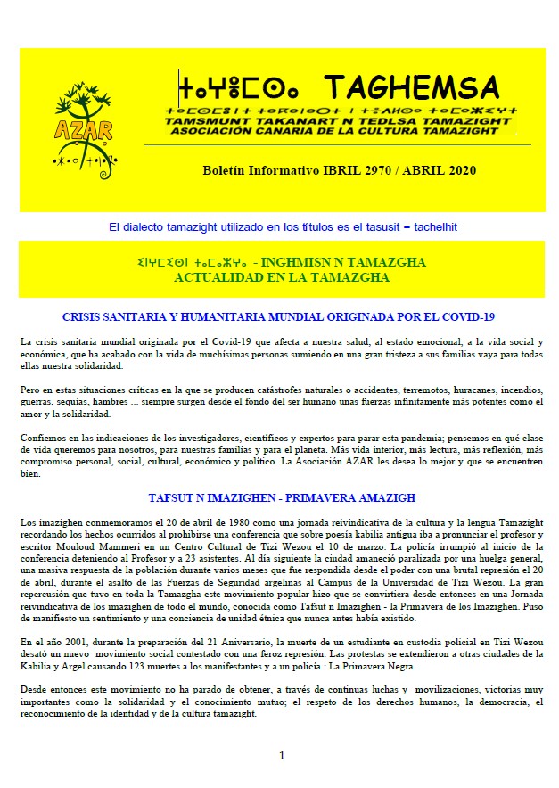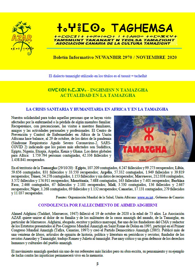 Taghemsa 2020 Enero 2020 Febrero 2020 Marzo 2020 Abril 2020 Mayo 2020 Junio 2020 Julio 2020 Agosto 2020 Septiembre 2020 Octubre 2020 Noviembre 2020 volver a Taghemsa